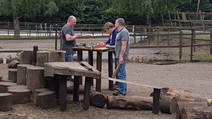 Medewerkers van Pharos Reizen kwamen met hun gezinnen gezellig een dagje klussen klaren bij Bio. In de kinderboerderij bij de Manege in ’t BioBos werd het geitenweitje uitgebreid, het Bio-bushokje kreeg een fris kleurtje en de menwagens en huifkar zijn weer fris en schoon voor onze vakantiegasten. Daarnaast sleepte het team alle oude takken, zaaghout en stronken in het BioBos de schredder in waardoor het nieuwe ‘Muzieklaantje’ - op weg naar de picknickbult - nu mooi en beter toegankelijk is, ook voor rolstoelers.