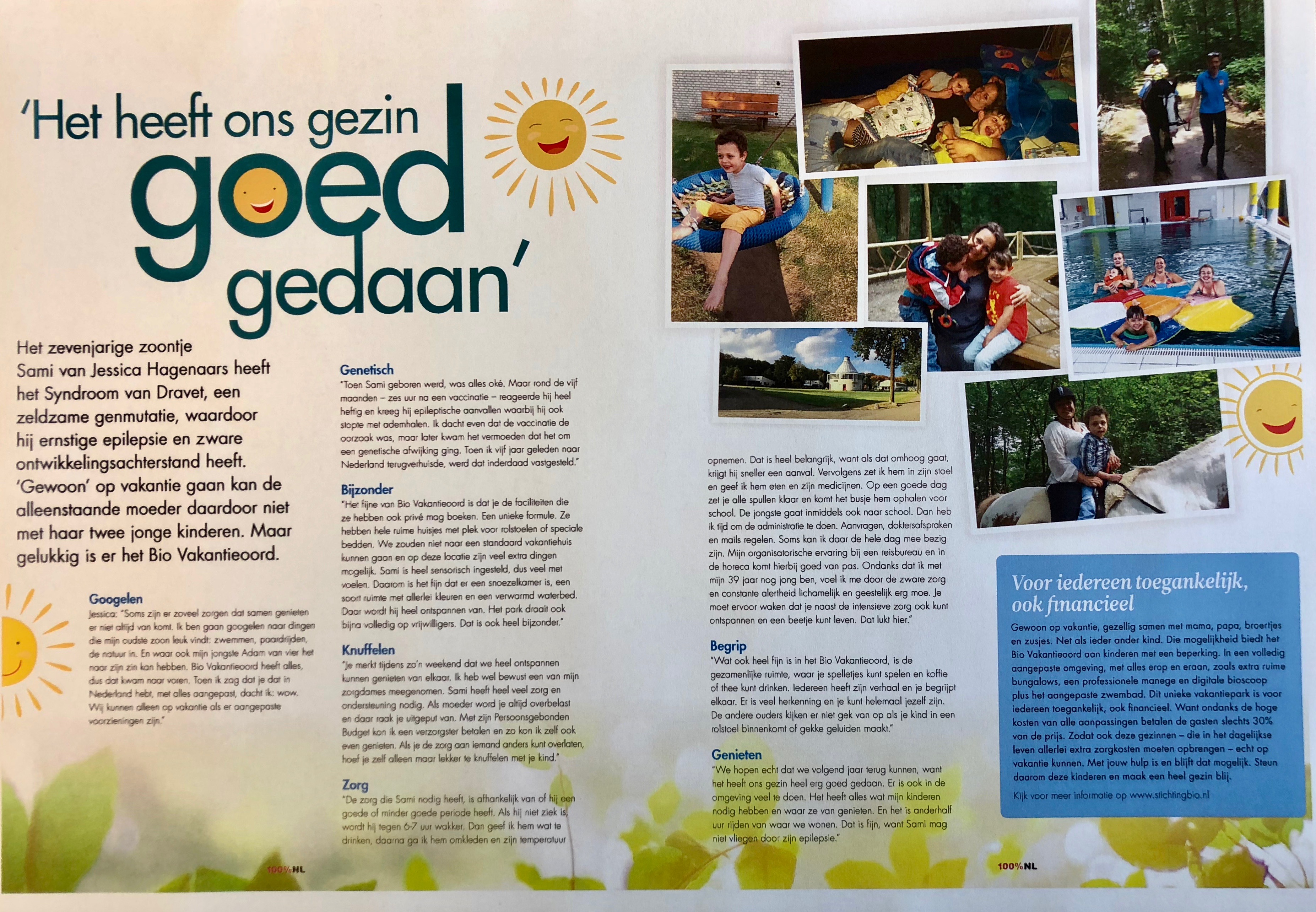 dinsdag 04 september 2018 12:34 Lees het mooie verhaal van Jessica Hagenaars in 100% NL Magazine. "Soms zijn er zoveel zorgen dat samen genieten er niet altijd van komt."