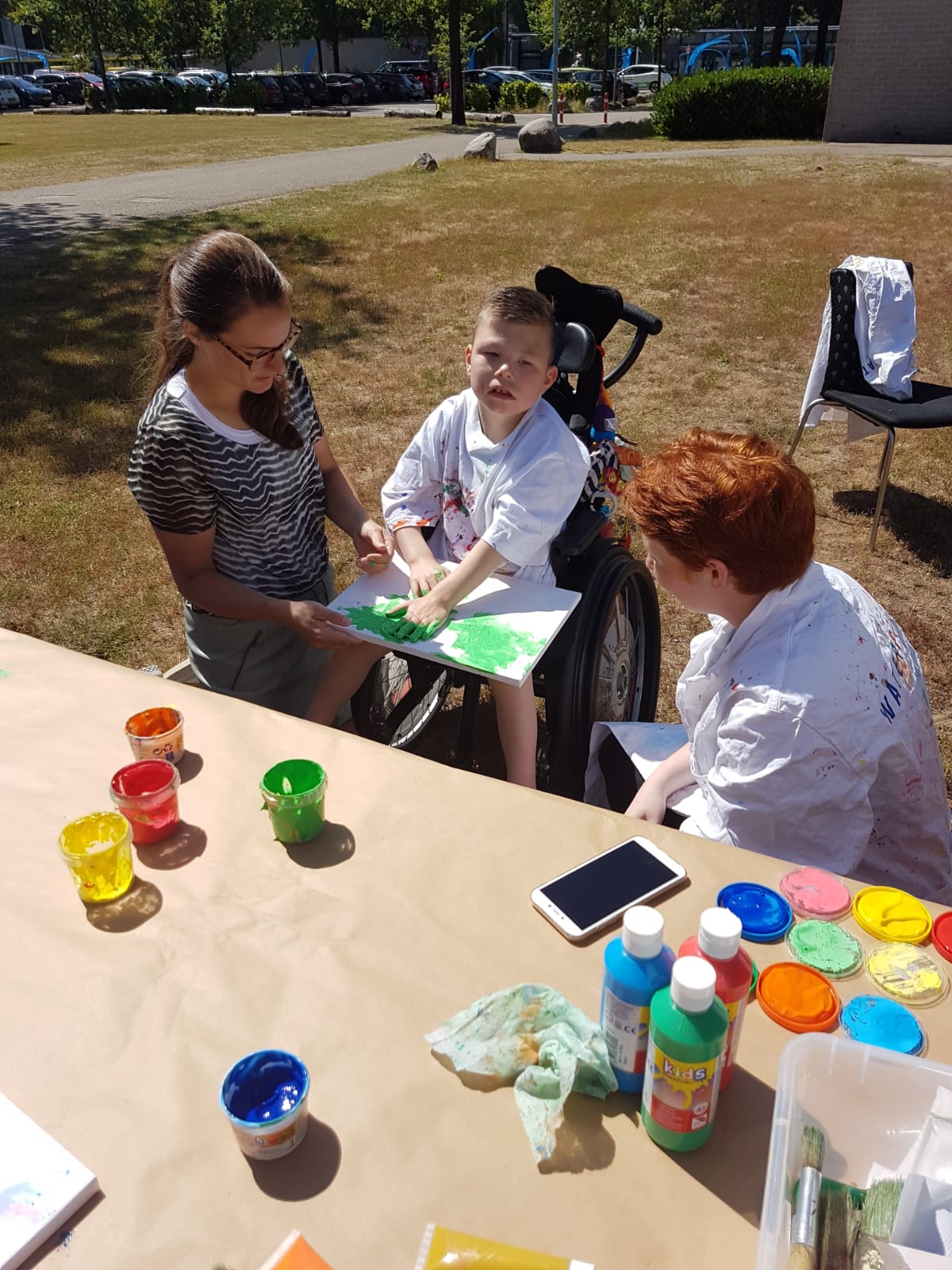 Wat een feest was het afgelopen donderdag bij Bio Vakantieoord. Studenten van ROC Rijn IJssel bezochten ons vakantieoord. Juist in deze zomerperiode is het fijn dat er vele vrijwilligers zijn die de meervoudig gehandicapte kinderen onvergetelijke momenten bezorgen tijdens hun vakantie. Zie de foto’s voor een geweldige workshop graffiti spuiten of lekker kliederen met verf.